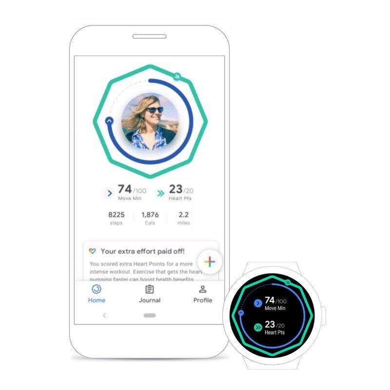 Dieses Konzept kennen wir von der Apple Watch. Dort gibt es einen roten Kreis für „Bewegen“ und einen grünen Kreis für „Training“. Bei Google Fit ist das nun ein grüner und blauer Kreis, die Grafik in diesem Beitrag zeigt euch wie das aussieht.