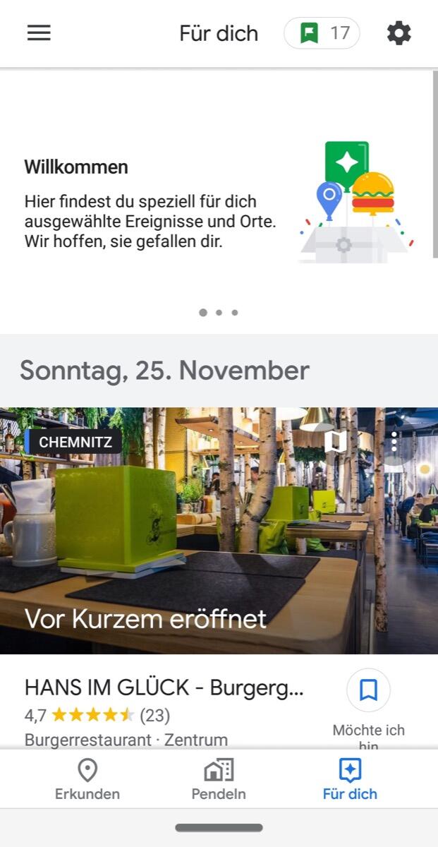Ab sofort landet der neue „Für dich“-Tab in über 40 Ländern unter iOS und 130+ neuen Ländern auf Android in Google Maps. Diese neue Registerkarte soll personalisierte Vorschläge für den Nutzer liefern. Sie ist im unteren Bereich der Maps-App zu finden. Bei mir ist er bereits gelandet, zumindest unter Android.