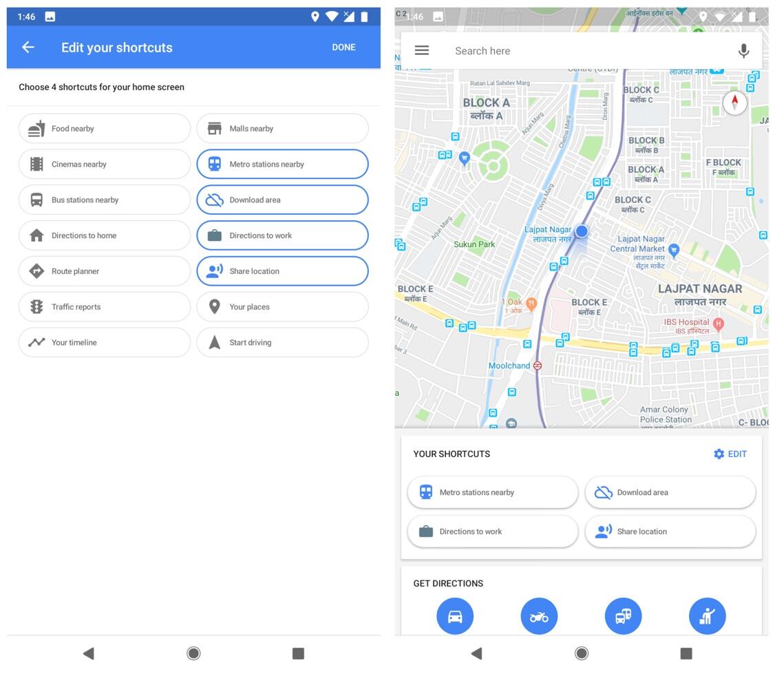 Was sind Shortcuts? Die Screenshots in diesem Beitrag stammen von einem Leser von Android Police und dort wird die Funkion als eine Art Schnellzugriff auf vier sehr beliebte Funktionen in Maps beschrieben. Man kann zwischen 14 Shortcuts wählen und sich dann 4 davon beim Start der App anzeigen lassen.