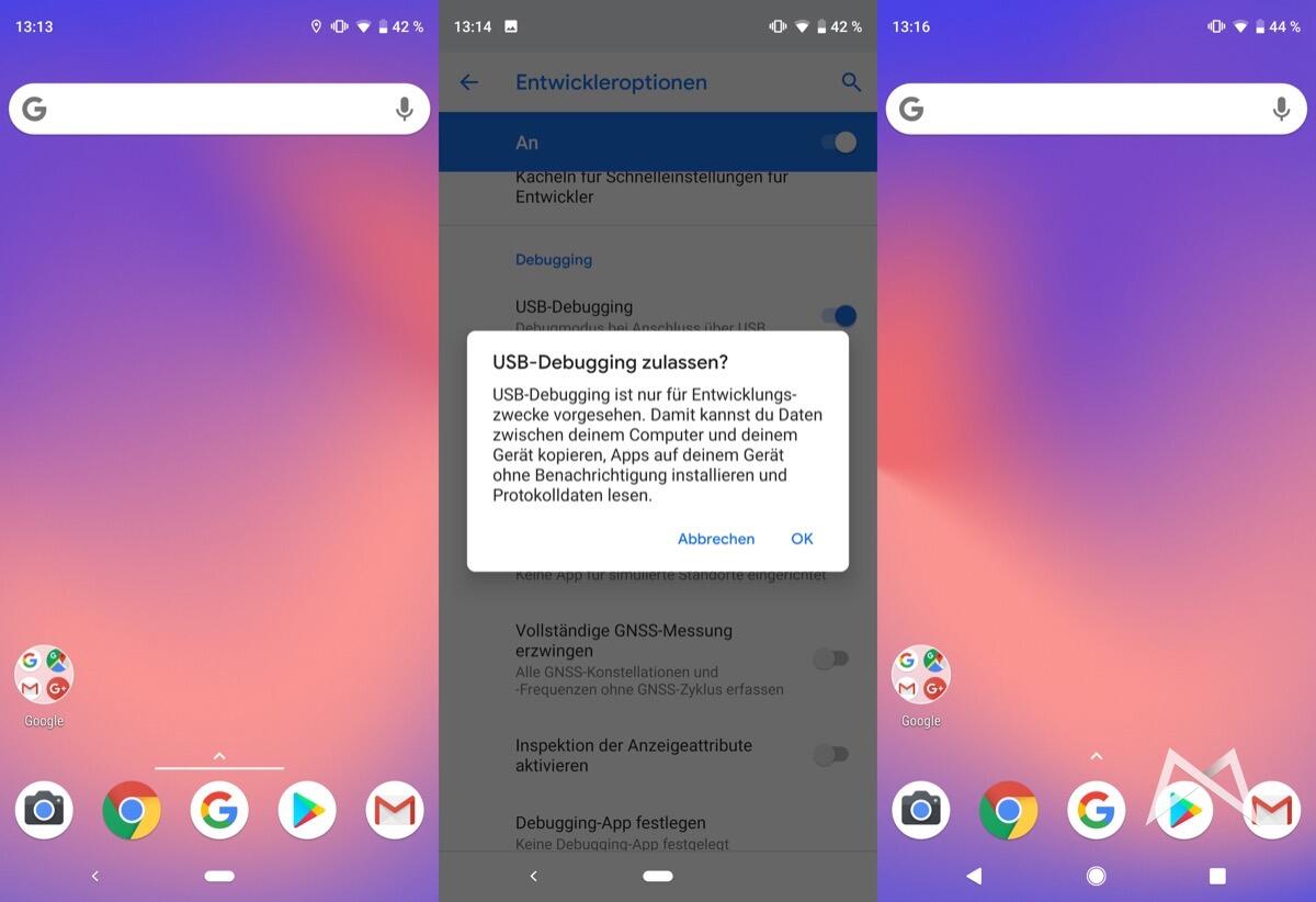 - Einstellungen → System → Erweitert → Entwickleroptionen → USB-Debugging aktivieren