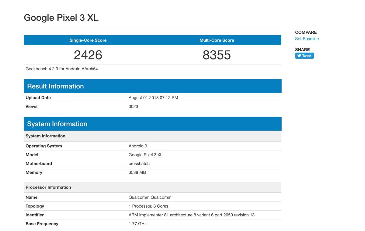 Das Google Pixel 3 XL wurde nun im Geekbench-Benchmark entdeckt und falls es kein Fake ist, dann erwartet und ein Snapdragon 845 mit 4 GB RAM.