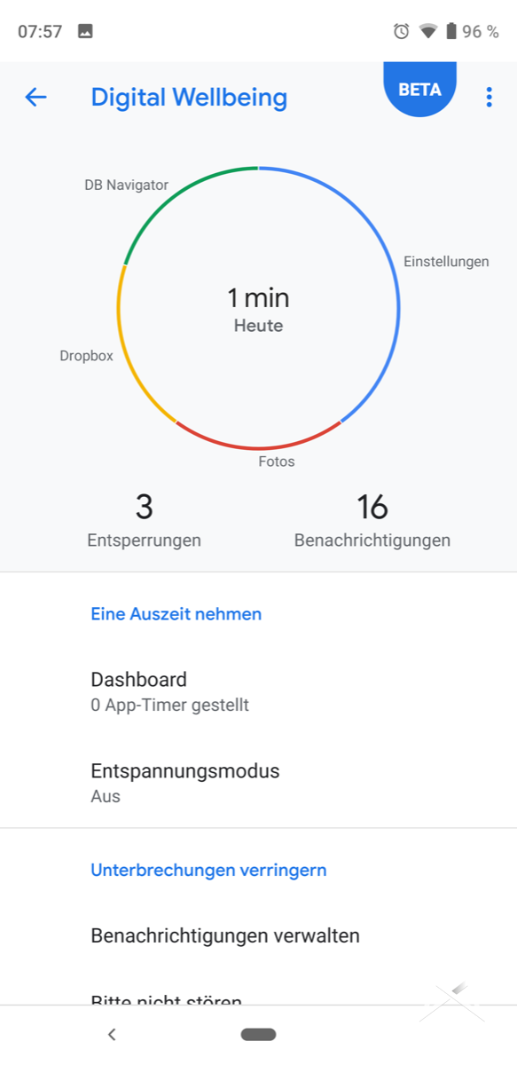 Auch Digital Welbeing findet auf dem Pixel 3 Platz und zeigt auf, wie lange man mit welcher App täglich seine Zeit verschwendet.