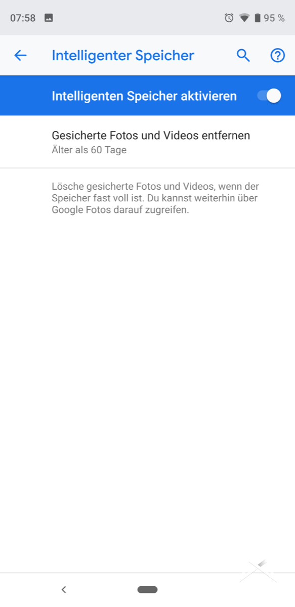 Fotos, welche mit dem Pixel 3 geschossen werden, werden bis 2022 in voller Auflösung auch ggf. in RAW in Google Fotos gesichert. Geht der interne Speicher entweder zu Neige oder auch nach einem festgestellten Intervall (z. B. nach 60 Tagen) werden die alten Fotos vom Gerätespeicher gelöscht, sofern sie vorher in Google Fotos gesichert wurden.