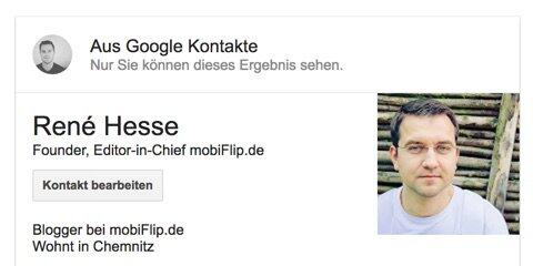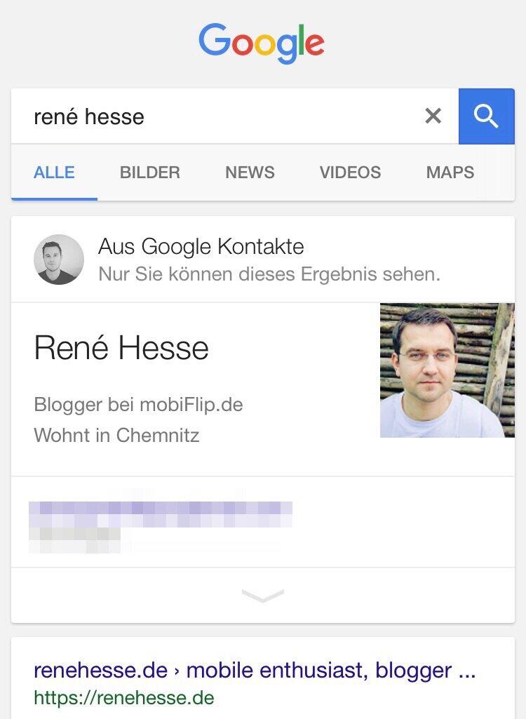 Die Informationen findet ihr, wenn ihr auf „Mehr“ und dort auf „Persönlich“ geht, sie werden aber auch in einem Kasten direkt in den Suchergebnissen angezeigt.