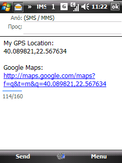 mobiFlip / Software / GPS Location: Unter Windows Mobile die aktuelle Position als Google Maps Link per SMS oder E-Mail versenden