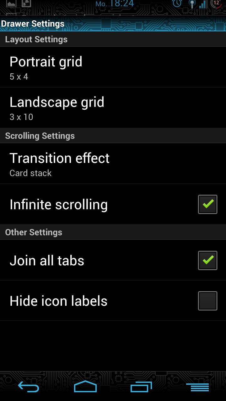 Set different drawer grid for portrait and landscape screen.- Scrollable Dock