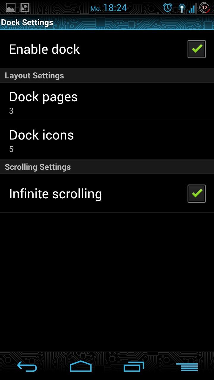 Up to 7 icons per page and up to 3 pages.- Infinite Scrolling