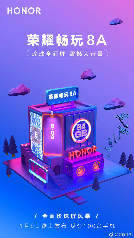 Honor wird direkt zu Jahresbeginn Anfang nächster Woche sein erstes neues Smartphone für dieses Jahr präsentieren. Dabei handelt es sich um das Einsteiger-Modell Honor 8A, welches am 8. Januar in China vorgestellt werden wird.