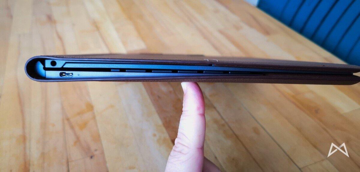 Der beiliegende Stylus machte sehr viel Spaß. Er besitzt eine präzise Druckerkennung und kann auch zur Steuerung einer Powerpoint-Präsentation genutzt werden. Aufgeladen wird der Stylus via Typ-C direkt am Stift selbst. Hierfür wird der Stift am oberen Ende lediglich leicht gedreht und aufgeschoben.