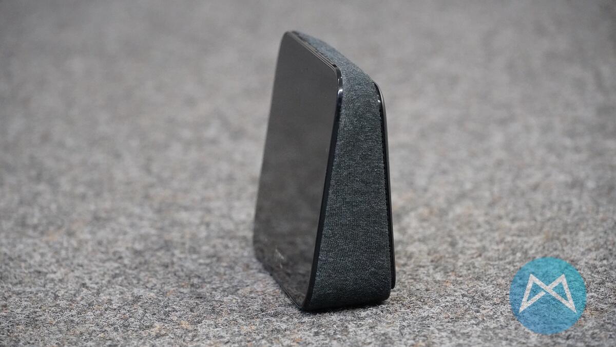 Auf den ersten Blick wirkt der HTC 5G Hub nicht wie ein mobiler Hotspot, eher schon kann man ihn mit einem Smart-Speaker wie dem Amazon Echo Show 5 verwechseln. Insbesondere die mit Stoff überzogene, keilförmige Seite gefällt auf Anhieb sehr gut und verleiht dem Gerät einen hochwertigen Eindruck.