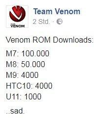 Diese Woche veröffentlichte das Team Venom auf Facebook eine Statistik, welche die Download-Counter der ROMs nach den jeweiligen HTC-Modellen auflistet: