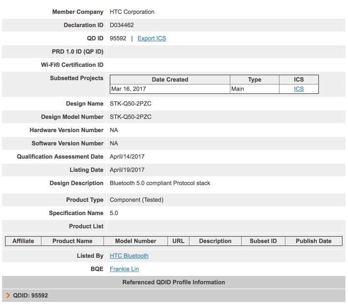 Am 16. Mai wird HTC ein neues Android-Flaggschiff vorstellen, welches als Ocean bekannt wurde und im Einzelhandel vermutlich HTC U heißen wird. Ein aktueller Eintrag bei Bluetooth.org deutet nun darauf hin, dass das Modell Bluetooth 5 unterstützen wird. Es könnte sich dabei natürlich auch um ein anderes Modell von HTC handeln, doch das glaube ich ehrlich gesagt nicht.