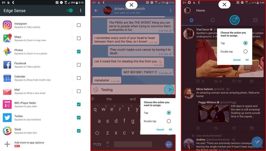 HTC testet nämlich in einer neuen Beta für Edge Sense die Option, dass man alles selbst anpassen kann. Sprich: Über Drücken kann die Musik-App gestartet und auf Play gedrückt werden. Über ein Drücken vom Rahmen kann Google Maps gestartet und ins Bild hinein gezoomt werden. Das ist bisher nicht möglich.