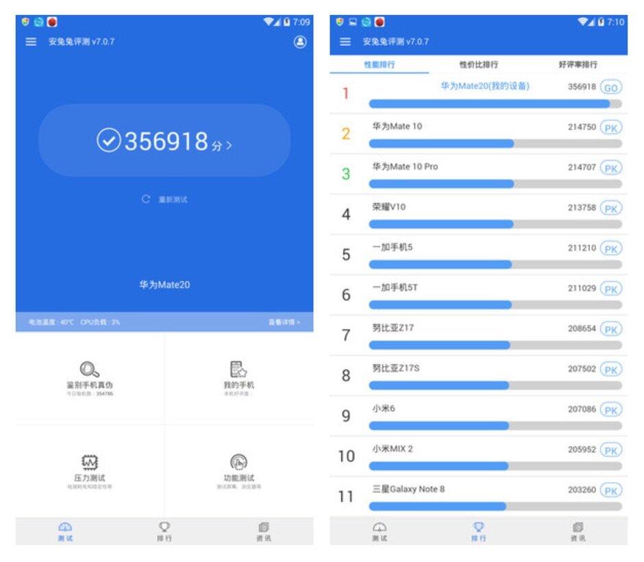 Nun ist ein mögliches Benchmark-Ergebnis von AnTuTu aufgetaucht, welches mit 356.918 Punkten durchaus imposant ist. Ich bin kein Freund von Benchmarks und teste Geräte lieber im Alltag, aber das wäre ein ordentliches Zuwachs bei der Performance. Es könnte ein Fake sein, aber Huawei testet das Mate 20 (Pro) mit Sicherheit schon aktiv und es wäre nicht das erste Smartphone, welches sich ein paar Monate vor der Ankündigung in einem Benchmark bemerkbar macht.