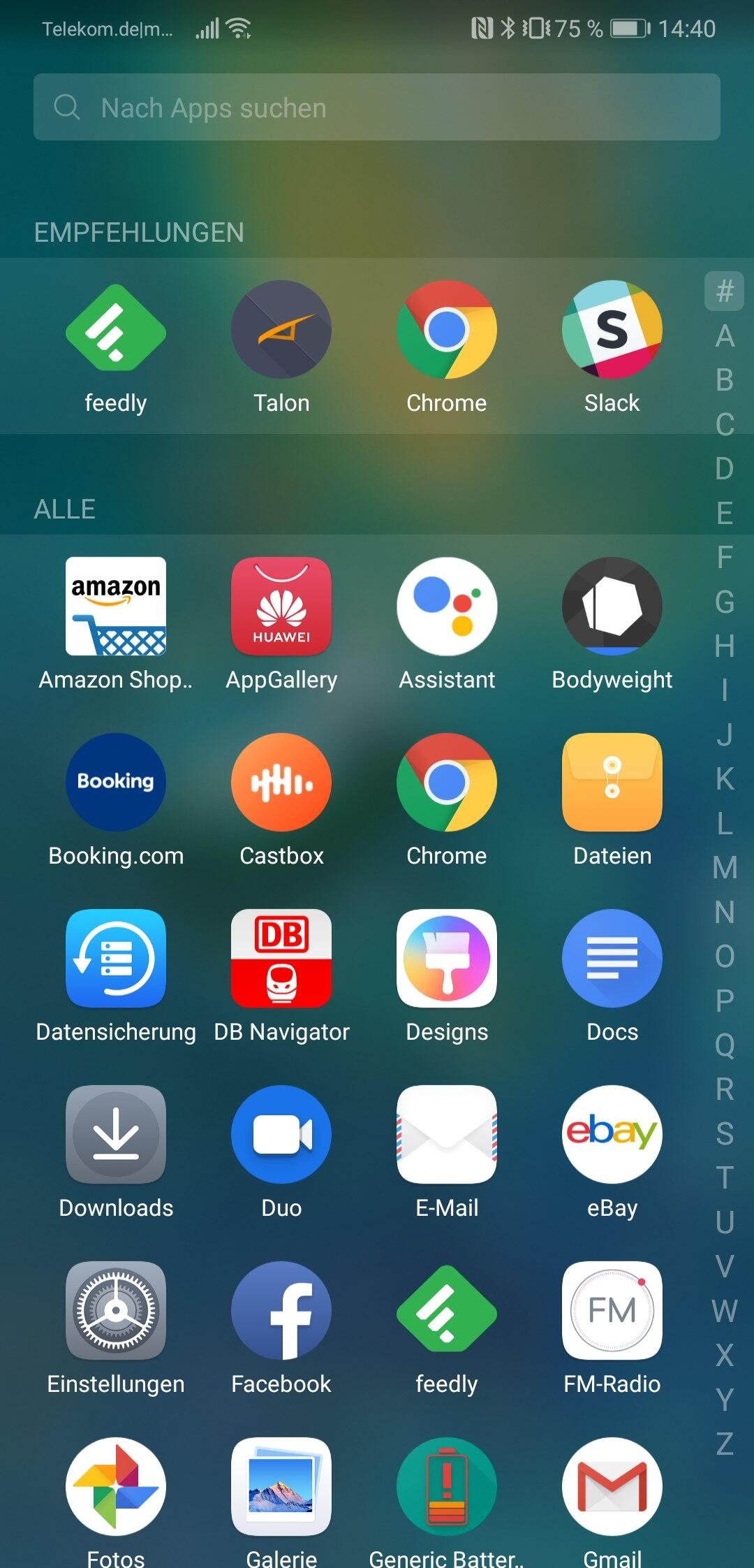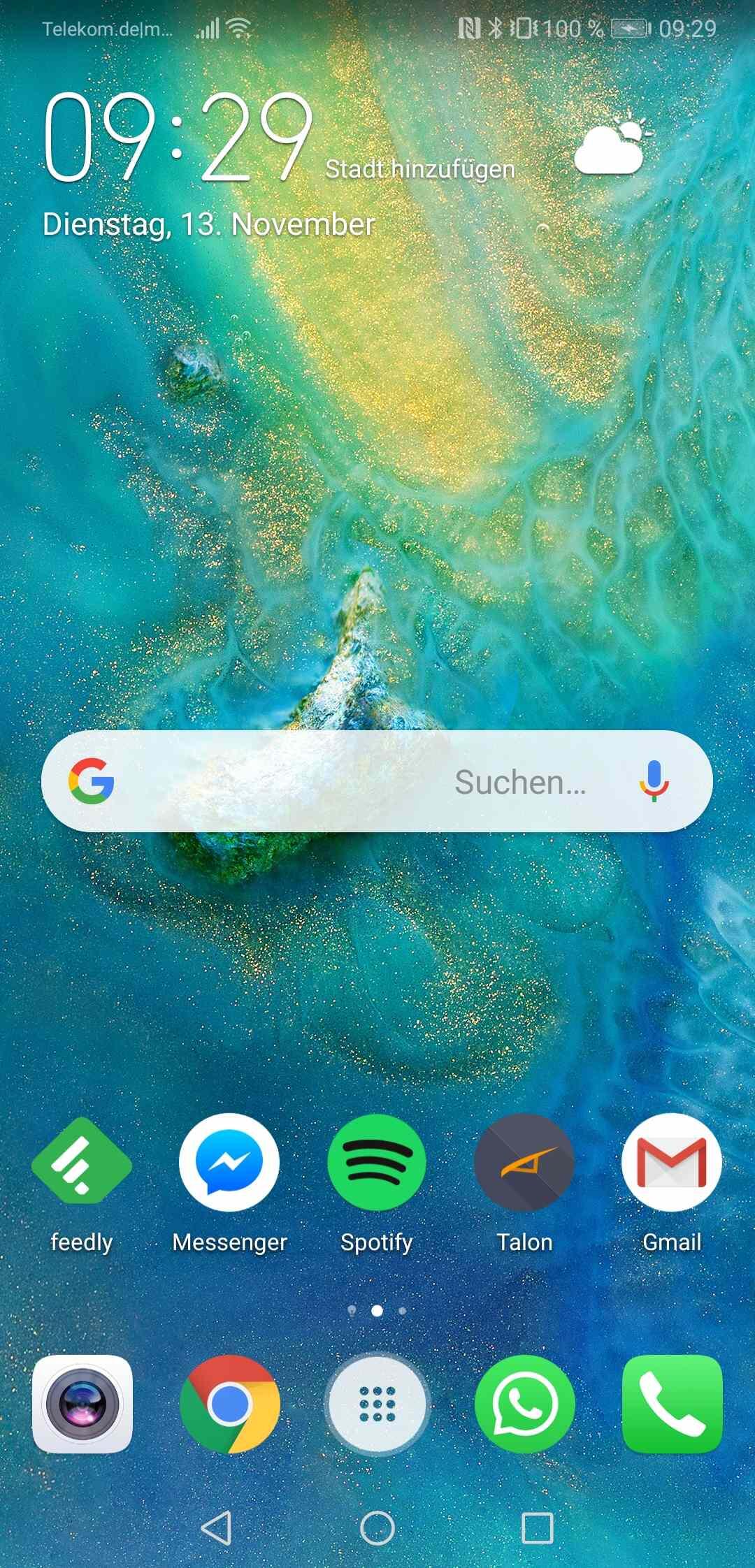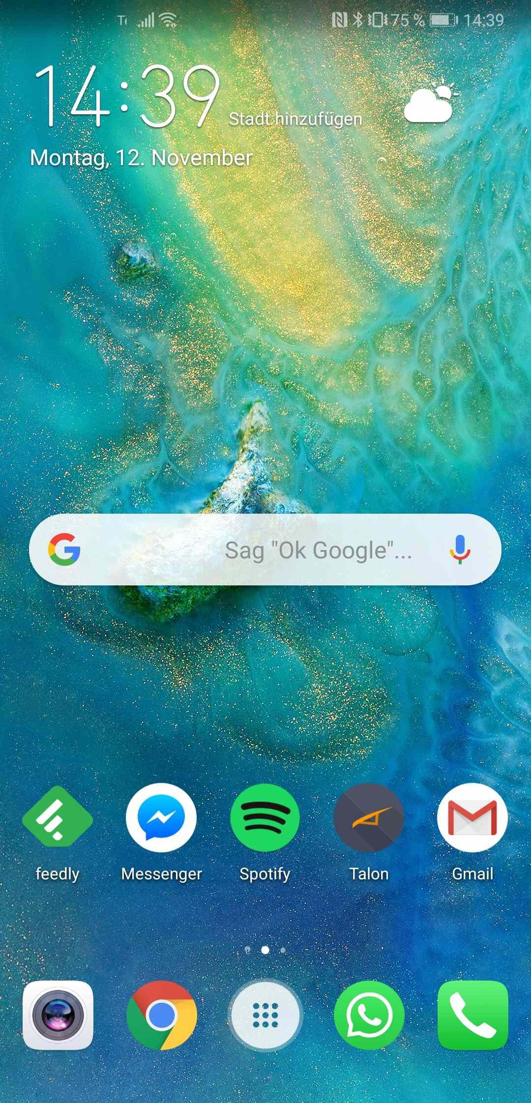 Ausgeliefert wird das Huawei Mate 20 bereits mit dem aktuellen Android 9.0 Pie, über das die hauseigene EMUI 9.0 als Oberfläche gelegt wurde. Diese bringt im Vergleich zu ihren Vorgänger-Versionen einige kleinere Neuerungen mit, ist aber auch weiterhin noch weit von Stock Android entfernt. Ab Werk fehlt beispielsweise ein App-Drawer, wobei ein solcher seit einiger Zeit immerhin auch ohne alternativen Launcher aktiviert werden kann.