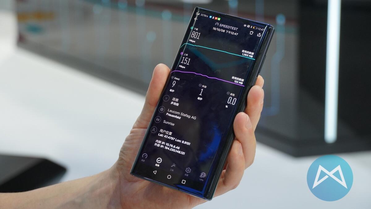 Das Huawei Mate X wird als 5G-Smartphone verkauft werden. Bei ersten Speedtests im 5G-Netz von Sunrise erreichte das Gerät auf dem Messestand Geschwindigkeiten von rund 1 GBit/s im Downlink und bis zu 150 MBit/s im Uplink. Zum Einsatz kommt ein HiSilicon Balong 5000 5G-Modem, welches Huawei selbst entwickelt hat.