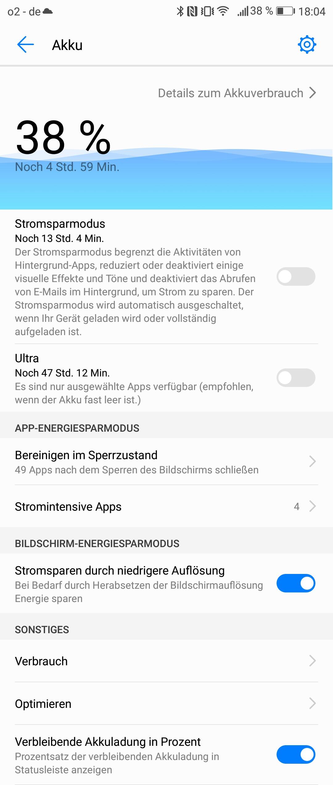 Zur Verlängerung der Laufzeit bietet das P10 diverse Optionen, zum Beispiel das Herabsetzen der Displayauflösung, an.