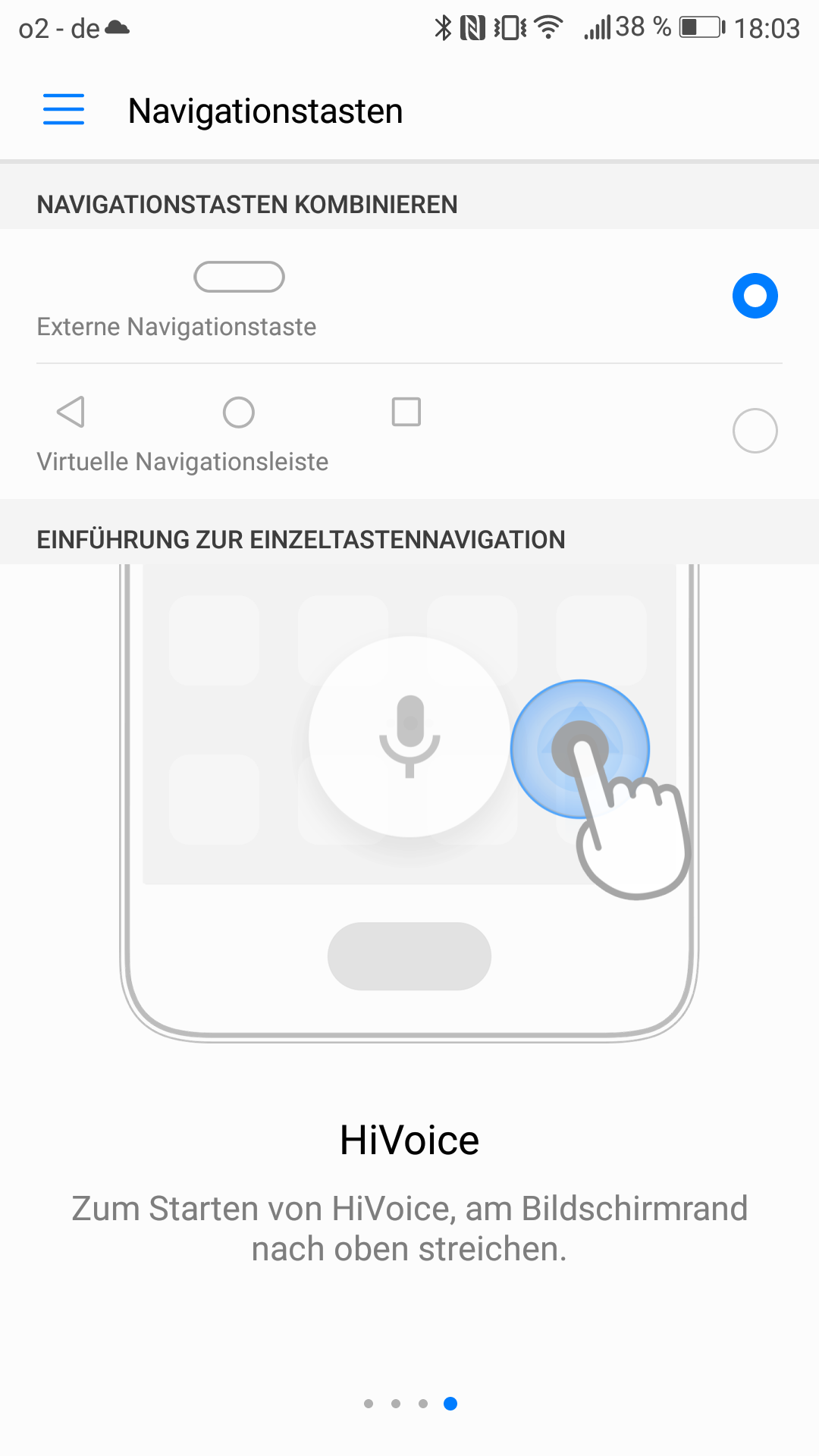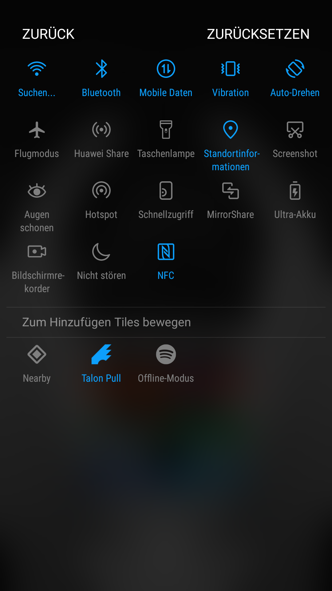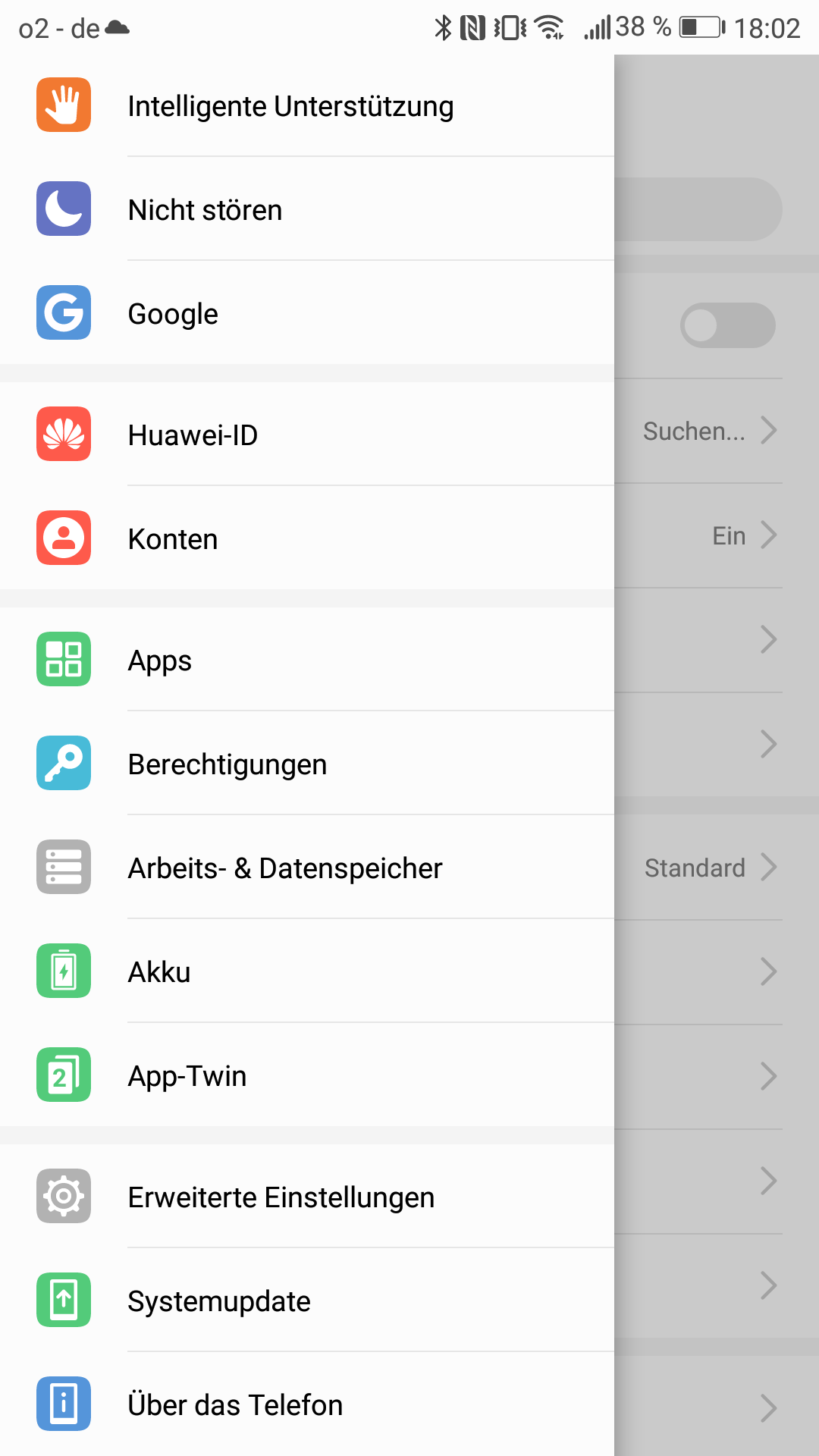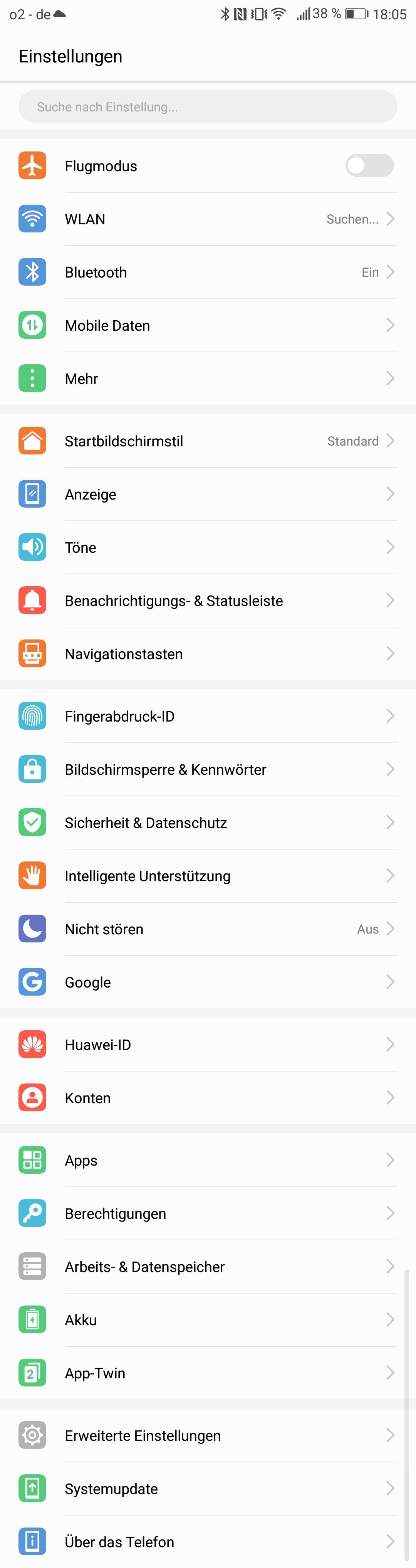 So wie sich im Huawei-Launcher mit Wischgeste das gesamte Smartphone nach Mails, Musik, Apps und mehr durchsuchen lässt, bieten die Einstellungen ebenfalls eine Suchoption. Zudem kann das Menü von links nochmals reingezogen werden.