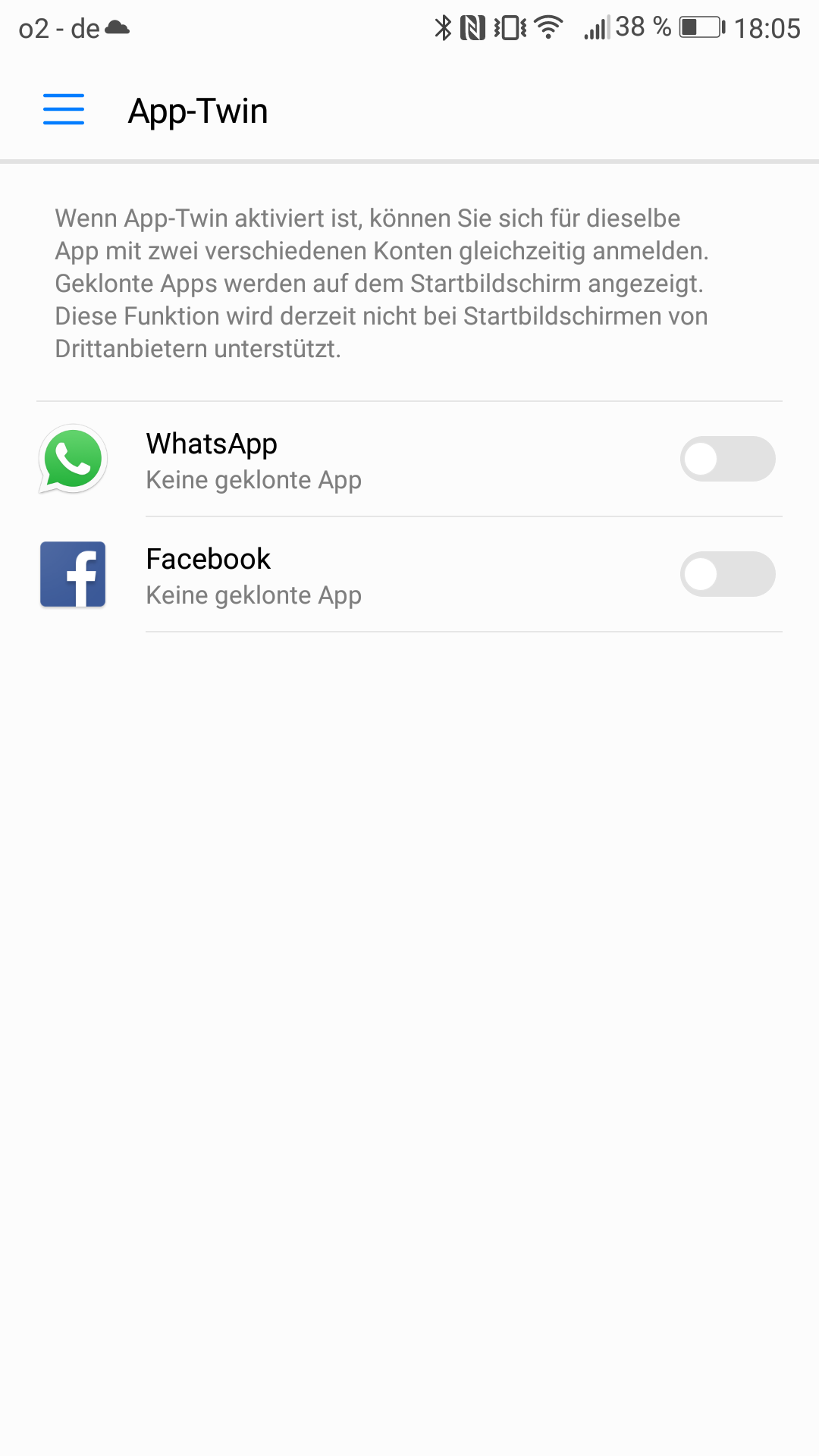 Das P10 kann unterstützte Apps klonen, sodass man sich z.B. für Whatsapp und Facebook zweite Apps mit anderen Kontodaten auf den Homescreen legen kann. Das Testgerät unterstützte kein Dual-SIM, für Varianten des P10 mit dieser Funktion könnte so beispielsweise für beide Nummern ein Whatsapp-Account laufen.