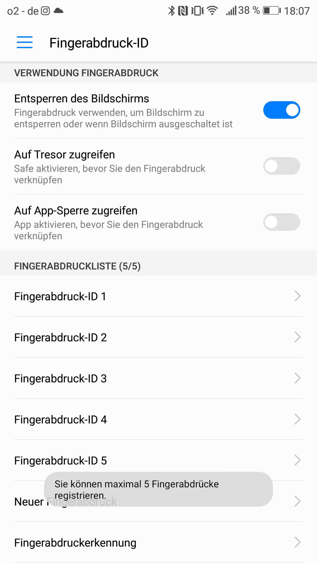 Im Tresor lassen sich sensible Daten speichern, die auch per Fingerabdruck freigeschaltet werden können. Apropos: Davon kann man fünf anlegen. In der Regel sind vier bereits für beide Daumen (für die Handhaltung) und beide Zeigefinger (für Tisch, Navihalterung o.ä.) vorbehalten – oder was speichert ihr so?