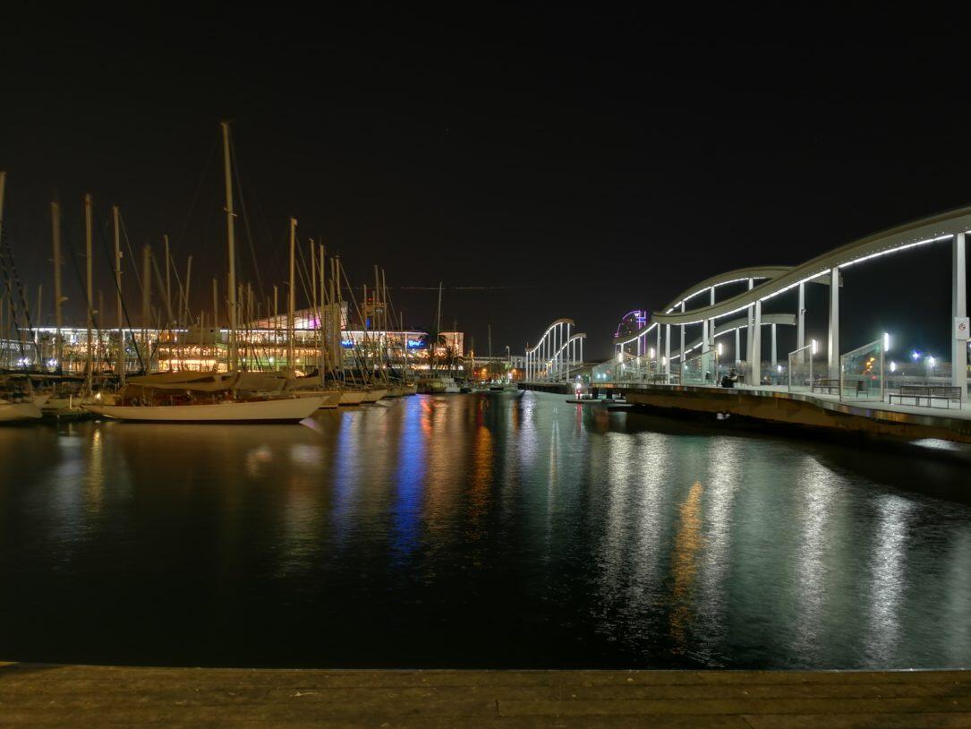 Nachtaufnahmen aus der Hand geschossen sind in Ordnung, besonders empfehlenswert ist aber der spezielle Nachtaufnahmemodus. Für diesen sollte man aber ein Stativ benutzen, da die Belichtungszeiten durchaus die 10-Sekunden-Grenze überschreiten.