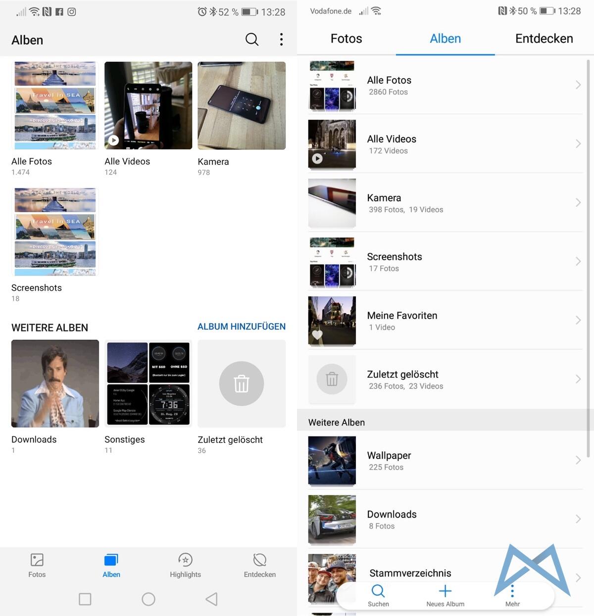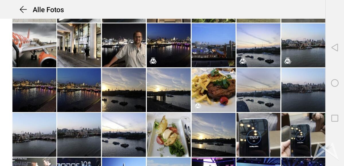 Gestern entdeckte ich dann in der Galerie noch ein schickes AI-Symbol. Das kannte ich doch schon vom Honor 10 mit seiner AI-Kamera? Ein paar der Testfotos vom Honor 10 hatten es auch in die Galerie des P20 Pro geschafft und genau bei denen wird das AI-Icon jetzt auch in der Übersicht, wie auf der Detail-Ansicht des Fotos selbst angezeigt. Wie auch auf dem Honor 10 kann man durch ein drücken auf das AI-Piktogramm den AI-Effekt deaktivieren/aktivieren.