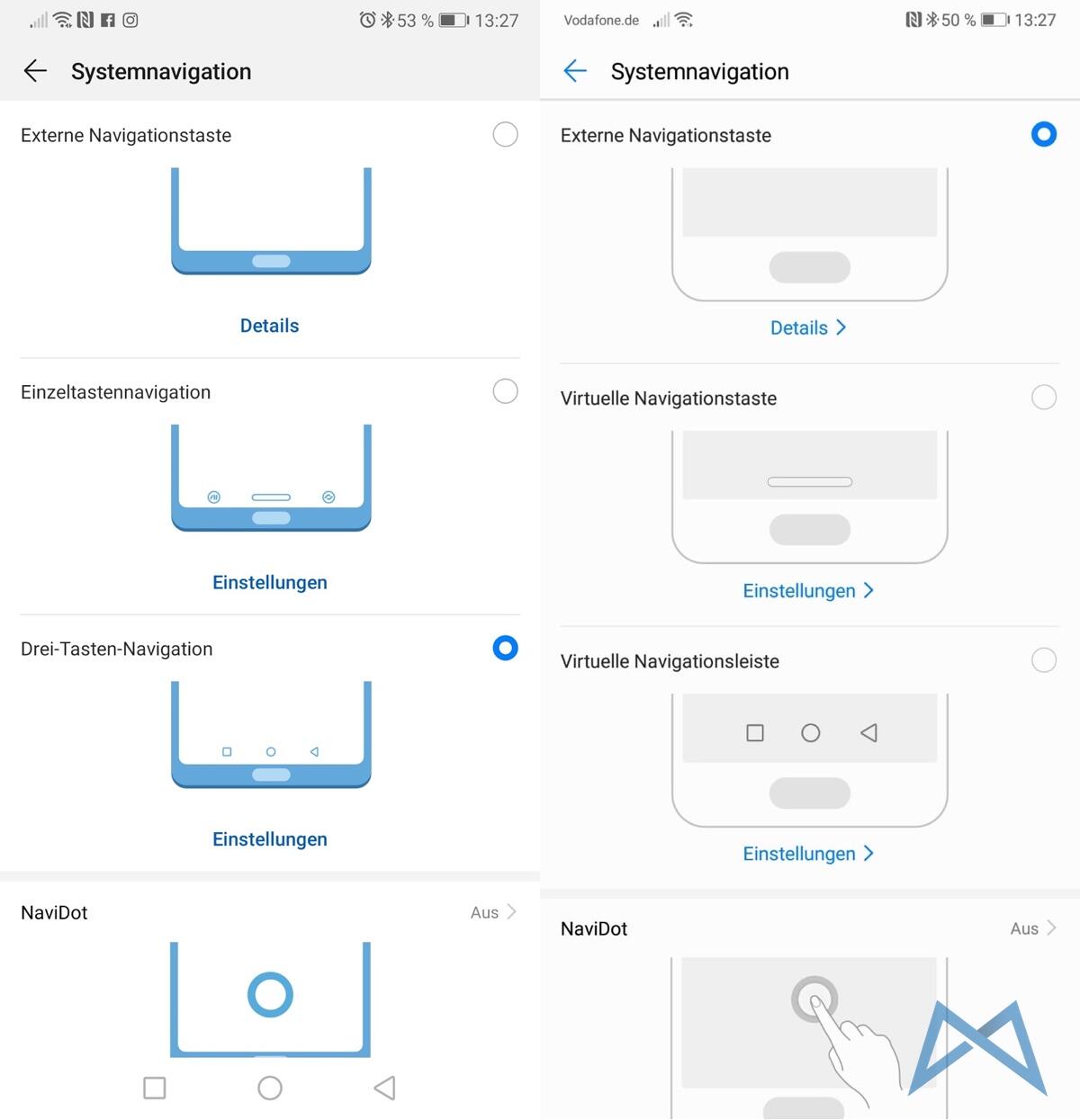 Die Systemnavigation schaut nun auch etwas anders aus, wenn die möglichen Funktionen aber die selben geblieben sind. Von der Android-Pie-Gestensteuerung konnte ich noch nichts finden. Es ist aber eine ähnliche Navigation seitens Huawei ja schon seit der ersten Firmware integriert worden.