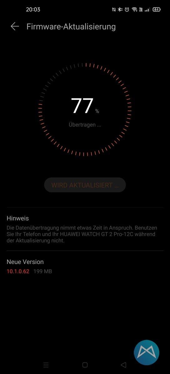 Ein paar Minuten später (ich dachte das Update wäre längst aufgespielt) wollte ich dann mit den Watchfaces auf der Huawei Watch GT 2 Pro spielen und bekam dezent den Hinweis, dass wohl gerade noch ein Update installiert werden sollte. :)