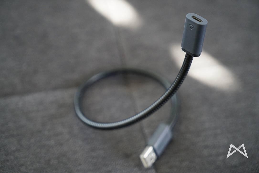 Ursprünglich ist dieser Schwanenhals-Adapter dafür gedacht, um die Insta360 Air auch an einem Windows-Rechner beispielsweise in Meetings nutzen zu können. Hierfür wird der Schwanenhals einfach an einen USB-Typ-A Anschluss im Laptop gesteckt und am anderen Ende die Insta360 Air eingesteckt. Die Kamera sollte dann unter anderem mit Skype funktionieren.
