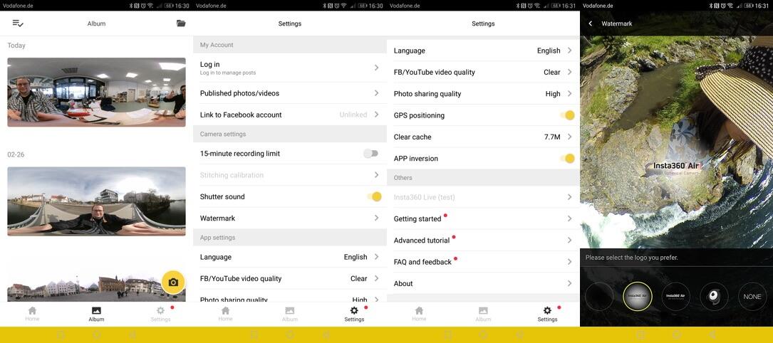 Über die Einstellungen kann jederzeit auch ein VR-Mode aktiviert werden. Dann wird das Bild wie immer in der Mitte gesplittet und damit die Ansicht für Cardboards optimiert wird. Als Sprache stehen zum jetzigen Zeitpunkt lediglich Englisch oder Chinesisch zur Verfügung. Weitere Einstellungsmöglichkeiten wären unter anderem der Shuttersound, welcher aktiviert/deaktiviert werden kann.