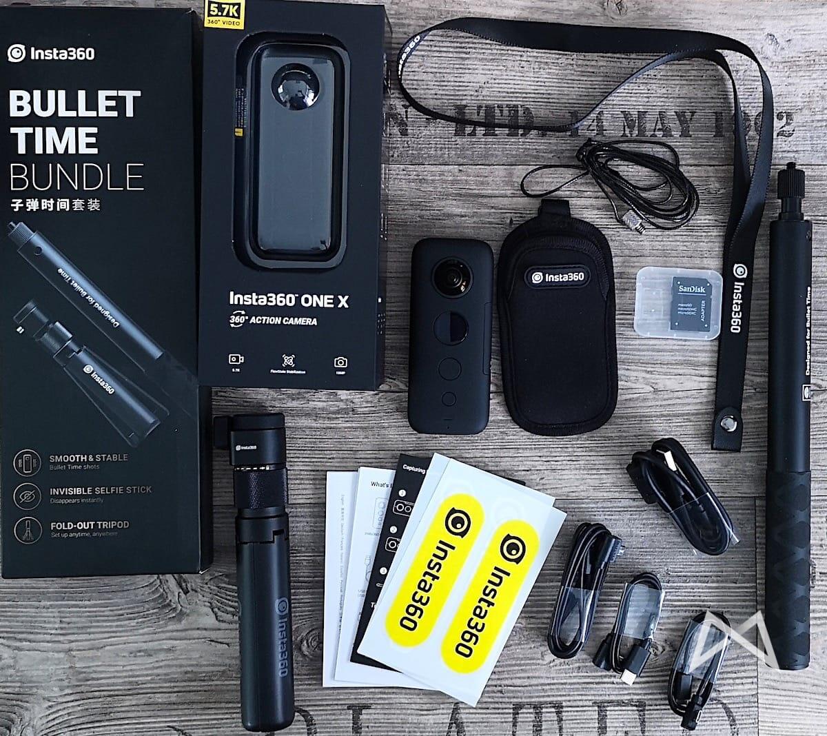 In meinem Lieferumfang befand sich die Insta 360 One X plus das BulletTime SelfieStick und Stativ-Paket. Es handelt sich hierbei übrigens um ein sehr hochwertiges Dreibein – dazu gleich noch mehr.