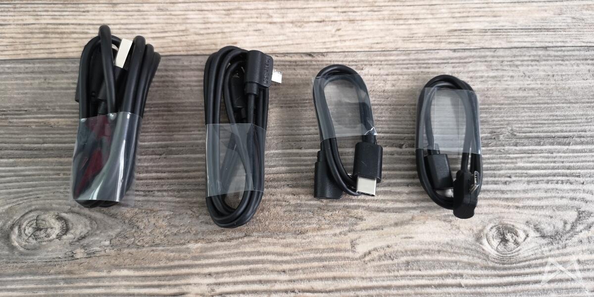 Im Lieferumfang befinden sich vier Kabel, damit die Insta360 One X auch mit so ziemlich jedem aktuellen Gerät (PC, iPhone, Android mit MicroUSB oder Typ-C) genutzt werden kann.