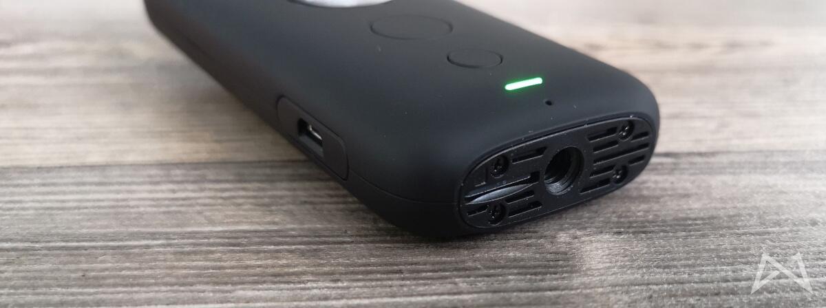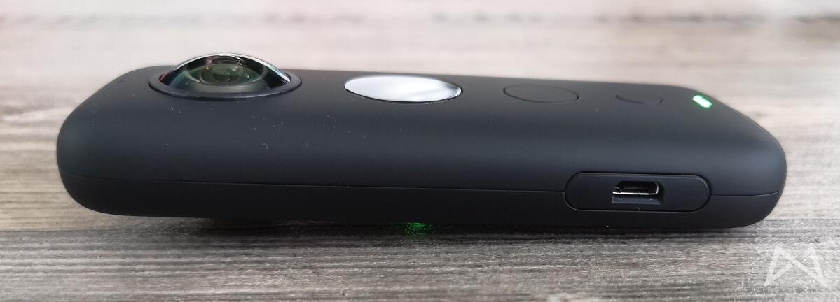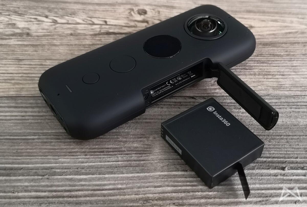 Die Insta360 One X wird mit einem wechselbaren Akku betrieben. Der Akku findet hinter einer seitlichen Klappe Platz, die keine Dichtung (Stichwort fehlende IP-Zertifizierung) aufweist. Dennoch kann mit einem Wechselakku die Nutzungsdauer auf diese Art einfach erweitert werden.