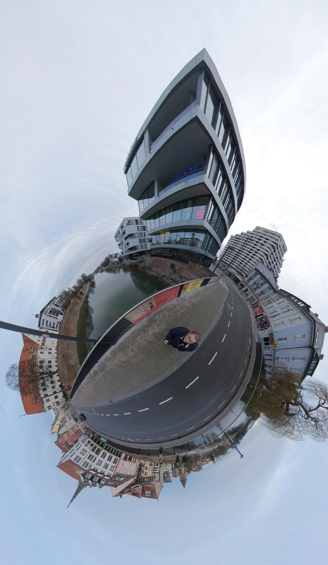 Die Anwendung erlaubt selbstverständlich Grundfunktionen, wie beispielsweise TinyPlanets zu erstellen. Diese können anschließend als einfaches Foto, oder auch als MP4-Clip mit Animation z. B. von TinyPlanet zur Panorama-Ansicht oder dergleichen exportiert werden. Siehe obiges Video und das folgende Foto.