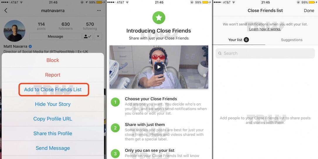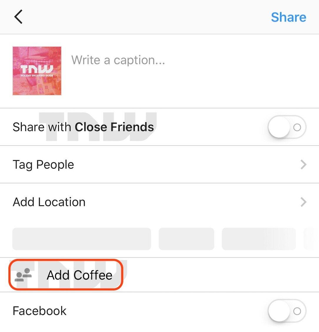 Weiter geht es mit der Option die Stories zu Archivieren und für später in der App zu speichern, einer neuen Liste für enge Freunde (man wird dann die Option haben nur mit diesen Personen einen Beitrag zu teilen), einer Share-Option für WhatsApp, einer gezielten Suche für die aktuell beliebtesten Emojis und Hashtags, der Option einem bestimmten Hashtag zu folgen (bereits bekannt), angepinnten Chats bei Direct und einer „Add Coffee“-Option – es ist aber nicht klar was das ist.