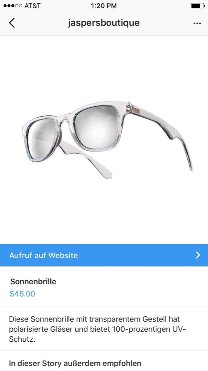 Wie auch bei Beiträgen im Feed, sind Produkte in Shopping Stories mit einer Einkaufstasche gekennzeichnet. Wenn man darauf tippt, erscheinen weitere Details und der Preis.