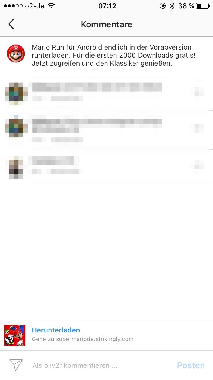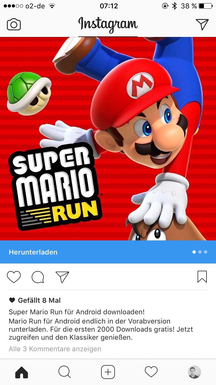 Instagram hat eine Werbeanzeige durchgewunken, die einen Fake von Super Mario Run für Android bewirbt. Es wird mit einer öffentlichen Beta geworben.