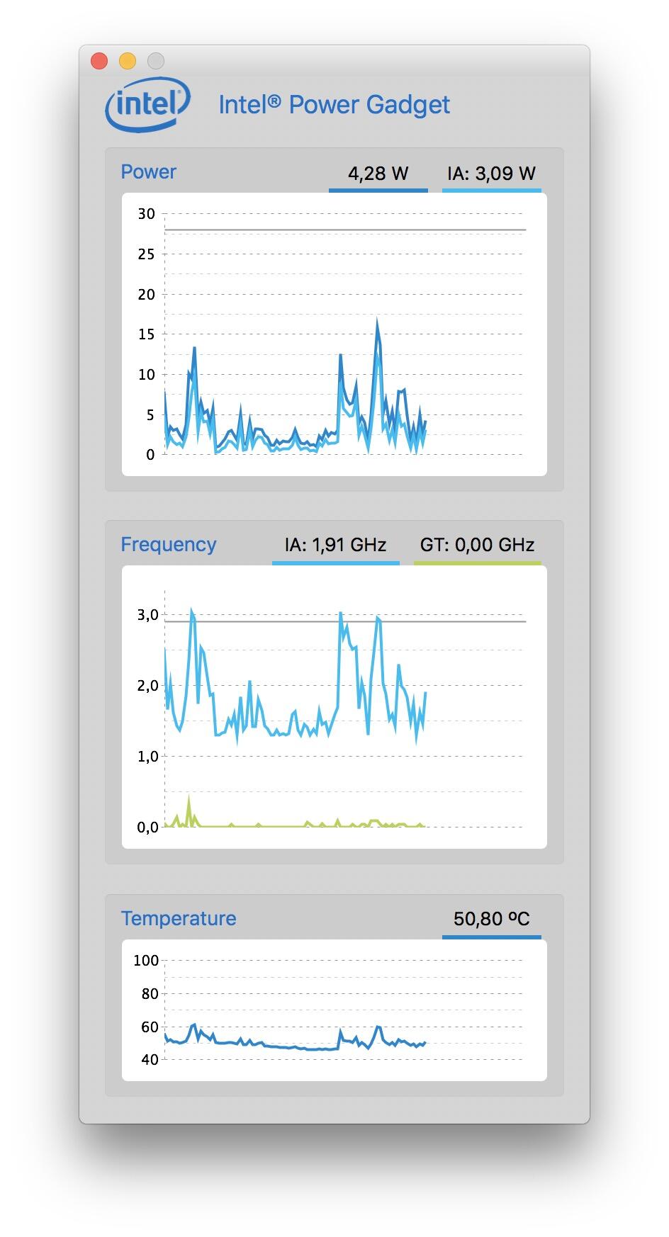 Intel Power Gadget zeigt CPU-Auslastung an