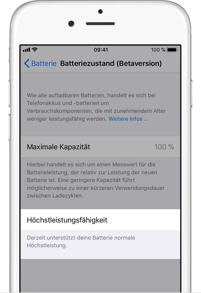 In der ersten iOS 11.3-Beta war diese Option jedoch noch nicht in den Einstellungen zu sehen, in der zweiten Beta ist sie nun (als Beta) enthalten. Dort gibt es zwei Dinge zu sehen: Die maximale Kapazität des Akkus und dann die Option auf Wunsch die „Hochleistungsfähigkeit“ zu aktivieren. Sofern der Akku aber genug Kapazität hat, wird natürlich die maximale Leistung des iPhones genutzt. Apple beschreibt die neue Funktion hier im Detail.