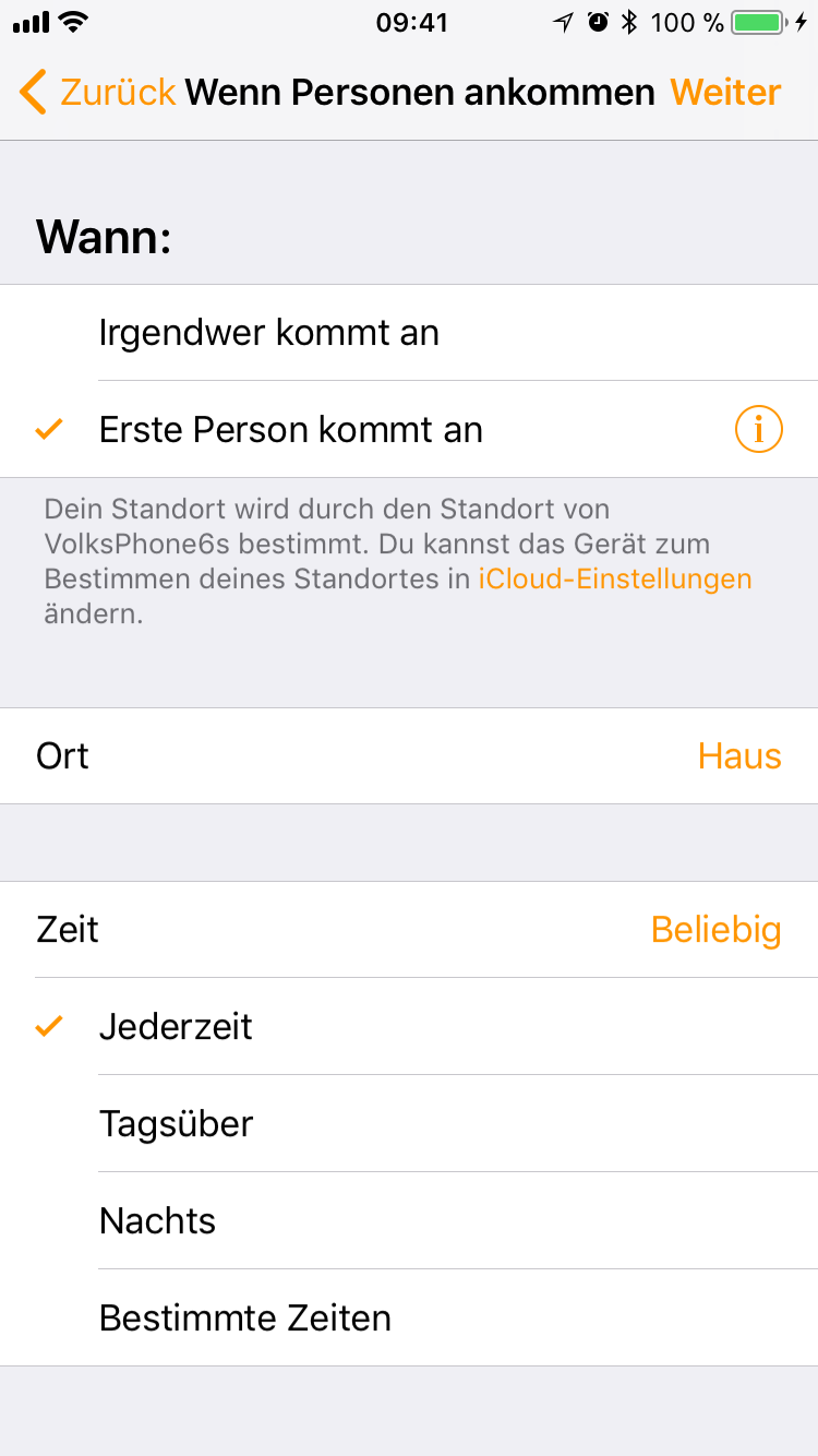 Auch lassen sich mit iOS 11 standortbasierte Automationen durchführen. Folglich kann man bei Ankunft, eine Regel auslösen wie beispielsweise: Heize die Räume im Haus auf 22 Grad, sobald die erste Person eintrifft. Weiterhin kann bei Verlassen eines Ortes eine weitere Regel aufgestellt werden wie zum Beispiel: Verlässt die letzte Person das Haus, regle die Heizung auf 18 Grad herunter.
