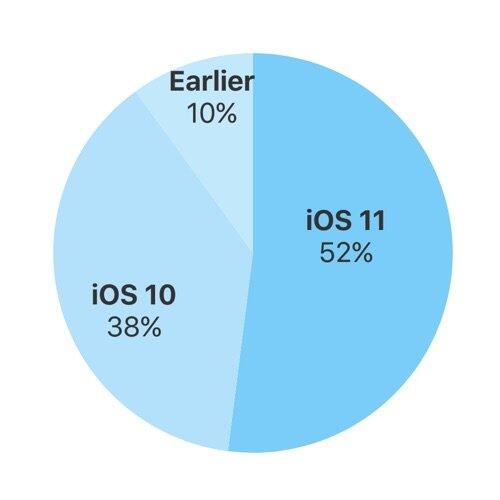 Apple hat sich mit Zahlen zur iOS-Verteilung in den letzten Wochen etwas zurück gehalten, man wollte vermutlich erst einen Meilenstein abwarten. Diesen hat man nun erreicht: Über 50 Prozent. Um genau zu sein ist iOS 11 laut Apple bereits auf 52 Prozent aller iOS-Geräte installiert. iOS 10 kommt auf 38 Prozent und 10 Prozent der iOS-Nutzer laufen mit einer älteren Version herum.