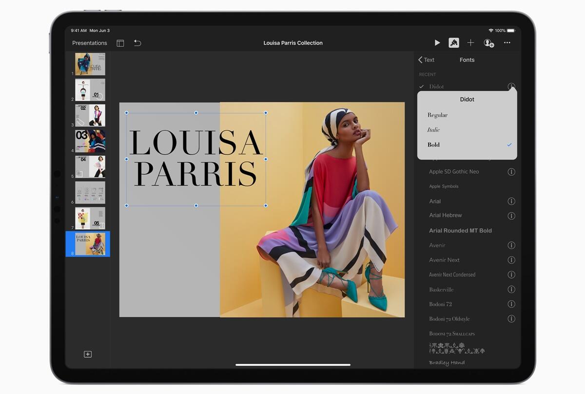 Neue Gesten zum Kopieren, Einfügen und Rückgängigmachen sollen unter iPadOS die Textverarbeitung erleichtern. Mit einer angeschlossenen Tastatur können Nutzer zukünftig außerdem auf über 30 neue Shortcuts zurückgreifen, um ihre Aufgaben noch schneller zu erledigen. Auch werden fortan eigene Schriften unterstützt. die einfach über den App Store installiert werden können.