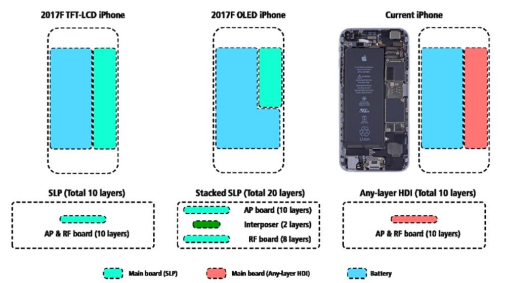 Was an der neuen Meldung von Ming-Chi Kuo interessant ist, ist eine mitgelieferte Skizze zum verbauten Akku. Das iPhone mit LC-Display soll weiterhin wie ein iPhone 7 aufgebaut sein. Beim OLED-Modell soll das Mainboard jedoch kleiner sein.
