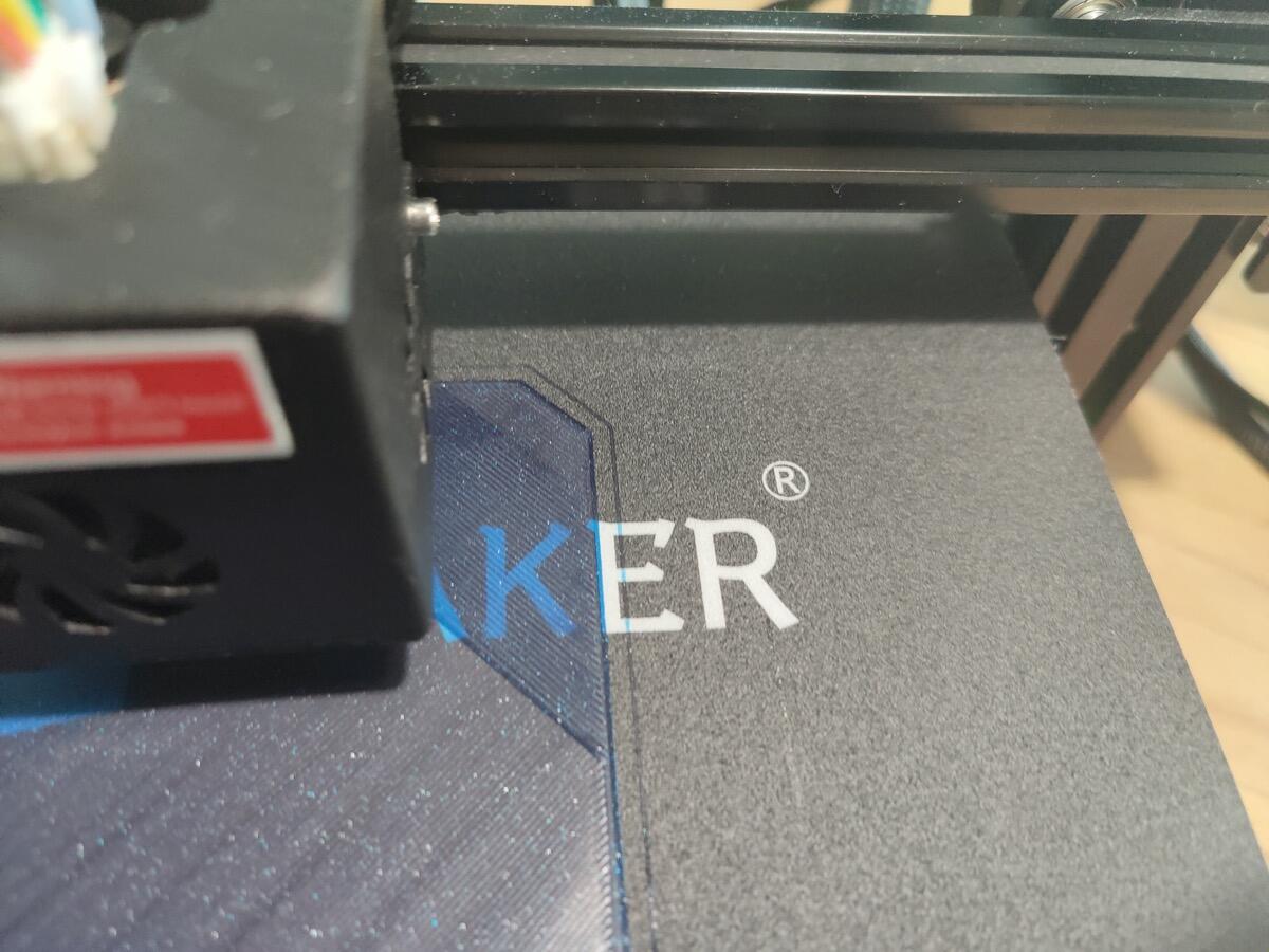 Ich habe testweise ein blaues PLA Glitzerfilament eingespannt und war angenehm überrascht, wie sauber die ersten Layer gedruckt werden. Da kann man wirklich nicht meckern!