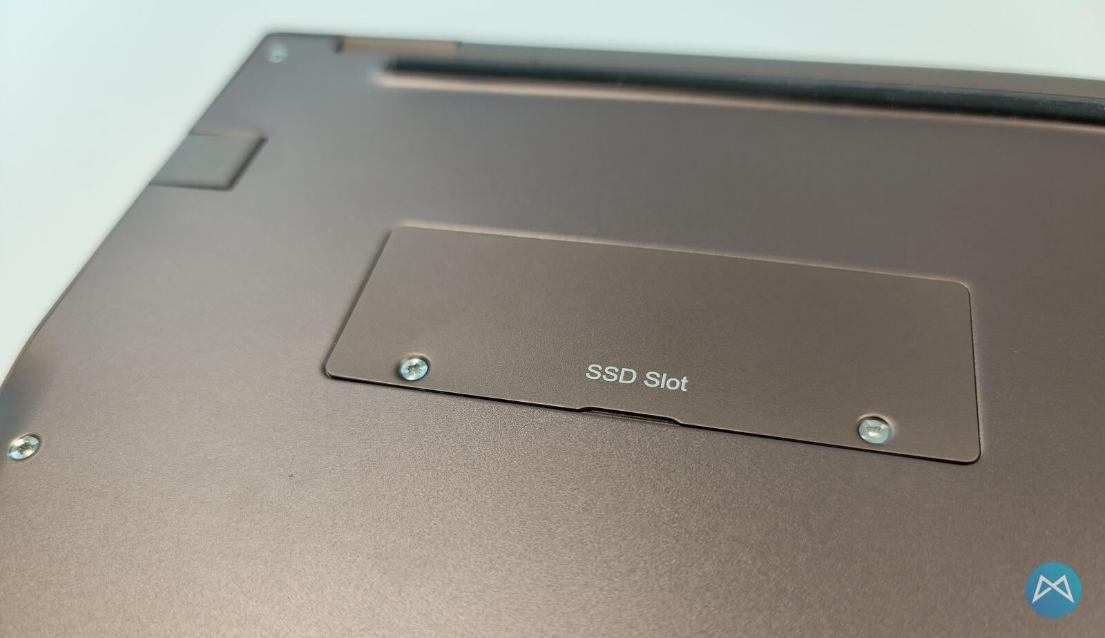 Wer möchte, kann sich den im EZbook X3 Air verbauten Speicher in Höhe von 128 GB über einen auf der Rückseite gut erreichbaren Slot mit einer M2 SSD noch erweitern.