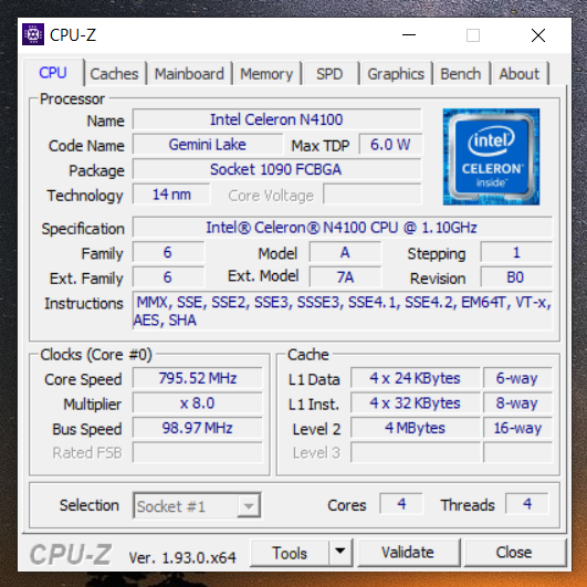 - Prozessor: Intel Gemini Lake N4100, GPU Intel HD Grafik 600