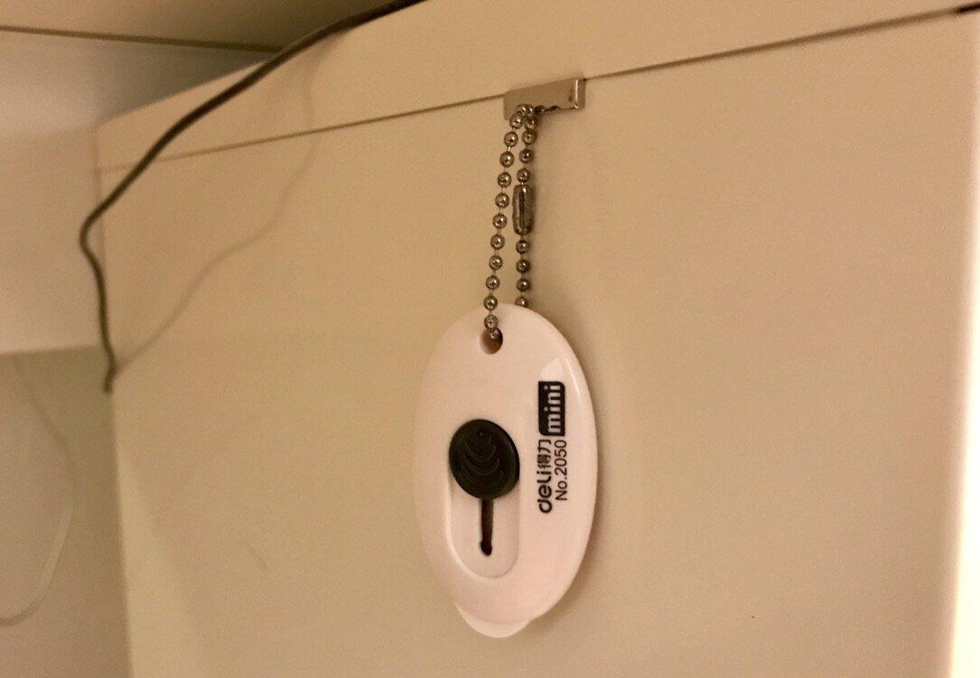 Unter meinem Schreibtisch baumelt nun ein kleines Messer (hatte ich von Gearbest), mit dem ich Pakete öffne.