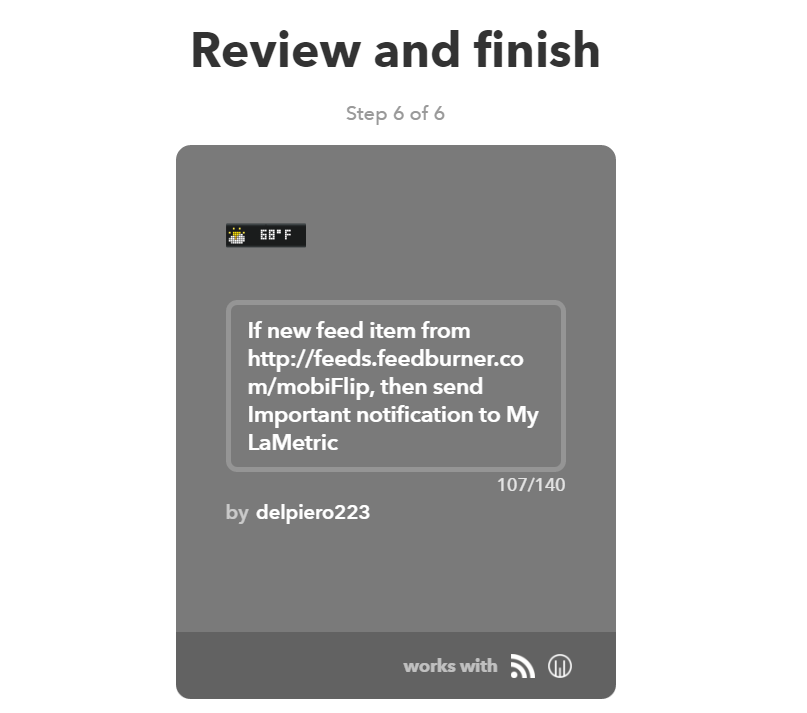 Auch ohne die Entwicklung eigener Apps, ist es dank IFTTT möglich, Benachrichtigungen durch andere Dienste und Aktivitäten auszulösen. LaMetric kann nach Download der passenden Anwendungen sowohl von sogenannten „Rezepten“ des Internetdienstes angesprochen werden, als auch durch Druck auf den Button als Auslöser fungieren.