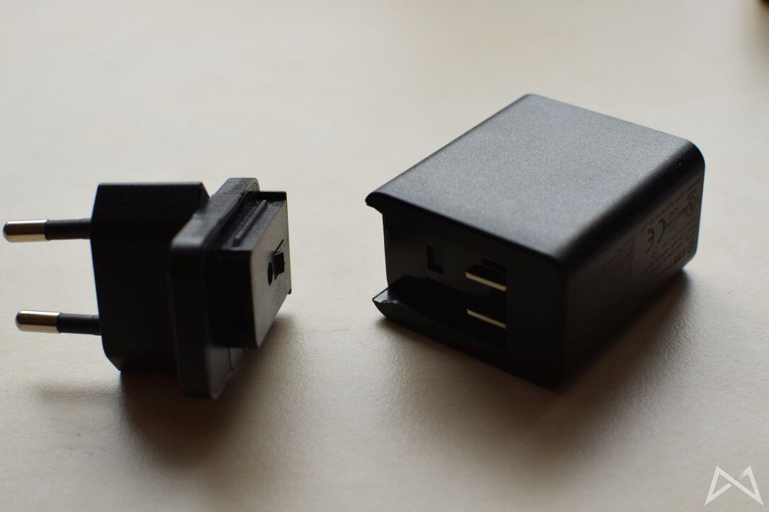 Die Adapter des recht klobigen USB-Netzteils mit einer Stromstärke von maximal 2A können mit wenigen Handgriffen getauscht werden. Meinem (wenig professionellen) USB-Messgerät zufolge gibt LaMetric sich auch mit 0,3A zufrieden und kann damit an nahezu jedem USB-Netzteil oder anderem Gerät mit USB-Ausgang betrieben werden.