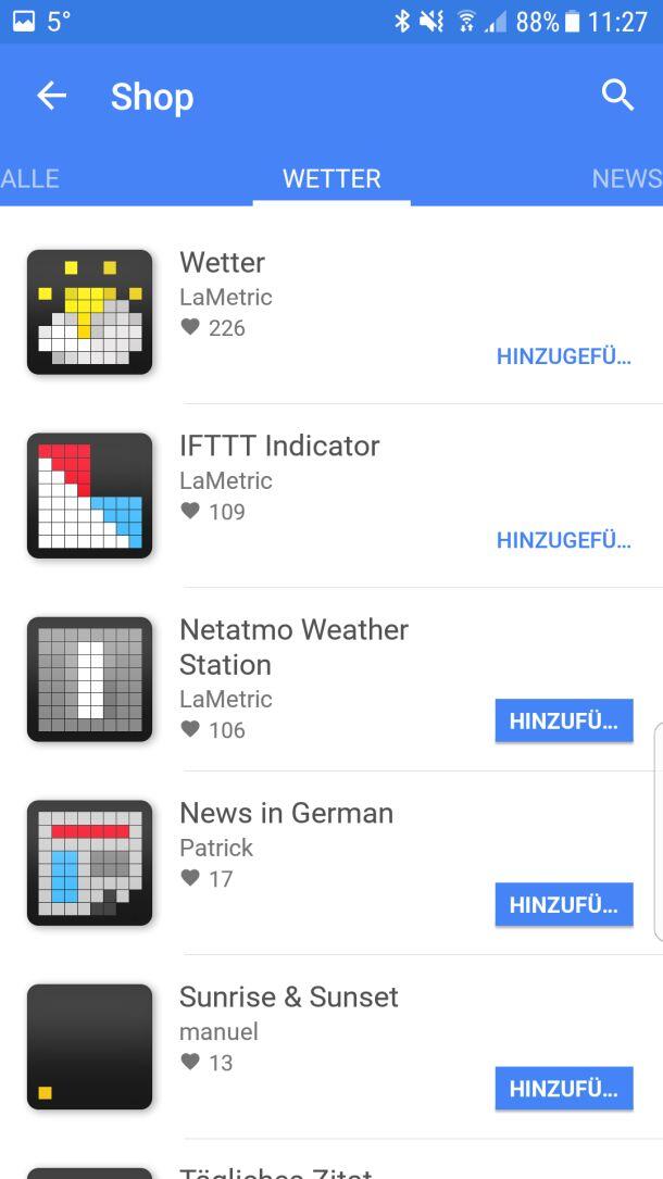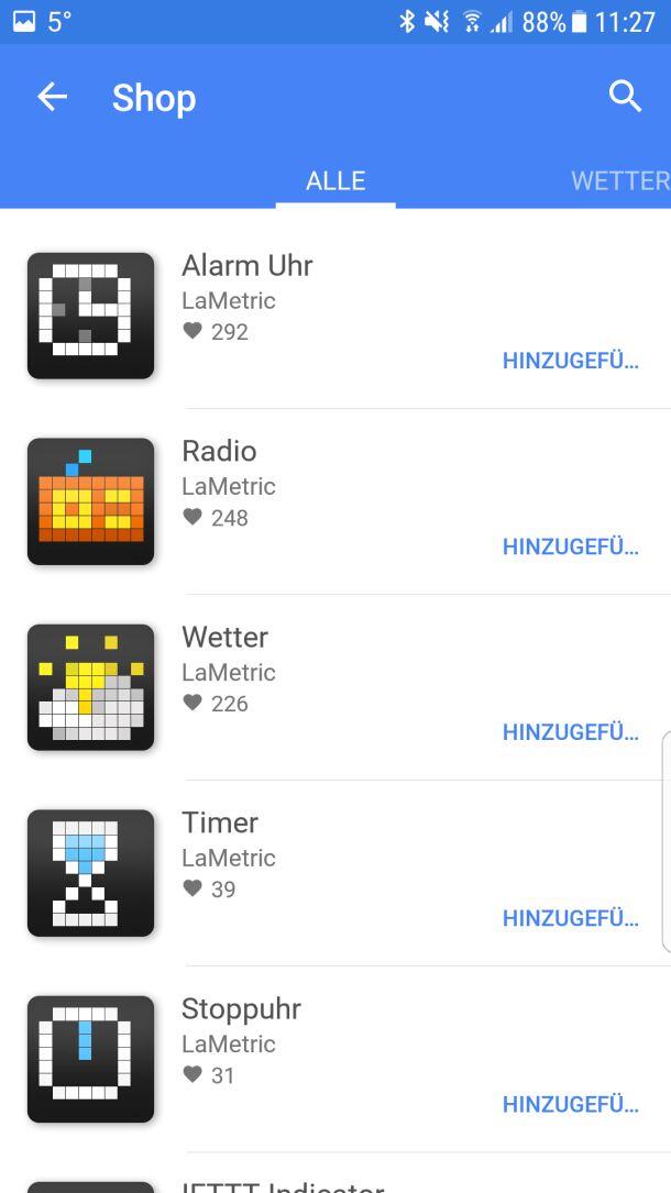 Über die App wird LaMetric dann mit dem heimischen WLAN-Netz gekoppelt und kann von diesem Punkt an eigenständig Daten aus dem Internet abrufen. Theoretisch ist der Zugriff auf das Smartphone von da an nicht mehr notwendig, jedoch beinhaltet die App gleichzeitig auch den App Store und ermöglicht die Konfiguration von Anwendungen.
